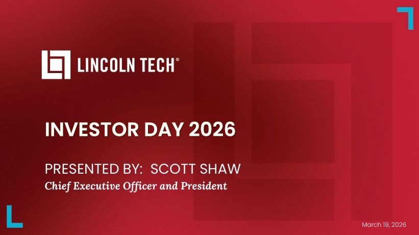 Lincoln Educational Services Corporation (Nasdaq: LINC) is hosting its 2026 Investor Day at 11:00am ET today at its Nashville, TN campus, and via a live video webcast. Scott Shaw, CEO and President and other members of senior management will review
