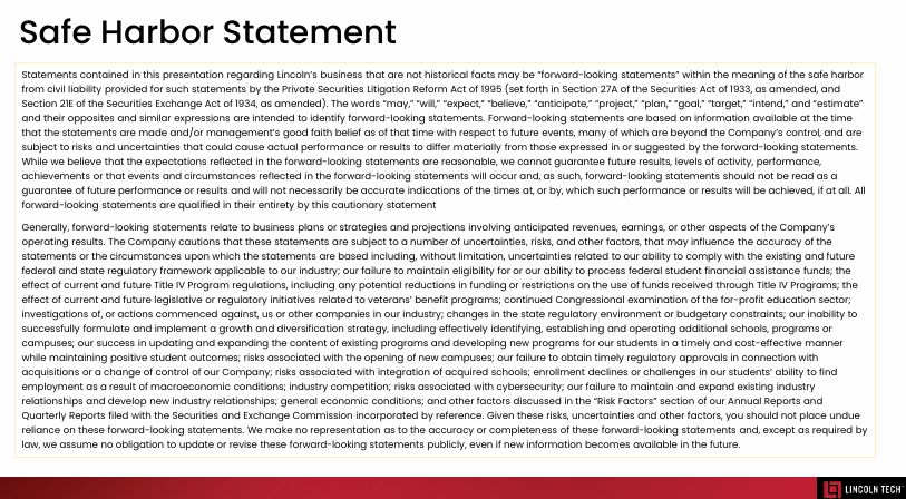 presented during the Investor Day, will also be available via the website. A replay of the Investor Day will also be available after the event via lincolntech.edu. Due to limited capacity, in-person attendance is available by