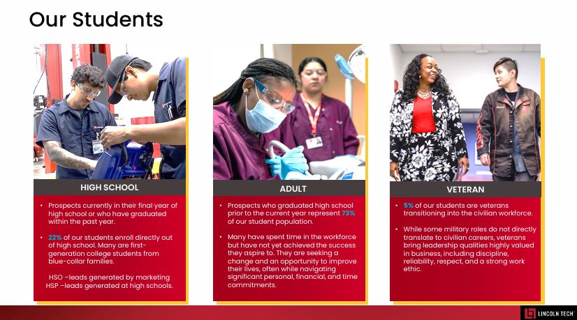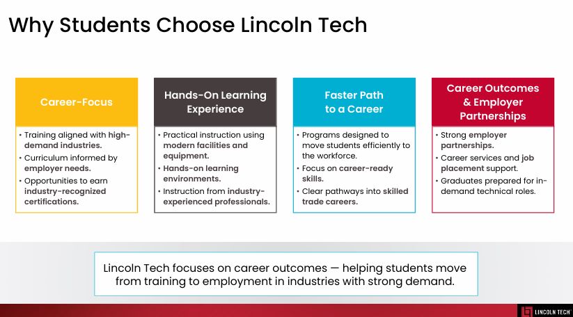 recent high school graduates and working adults career-oriented programs in skilled trades, automotive technology, health sciences and information technology. Lincoln has provided the workforce with skilled technicians since its inception in 1946.